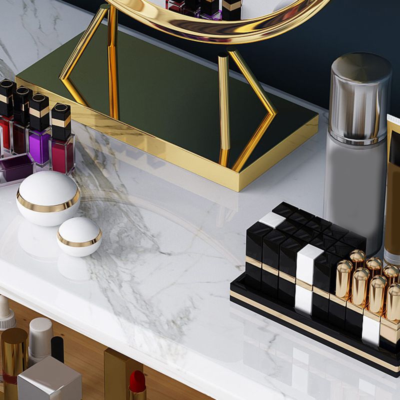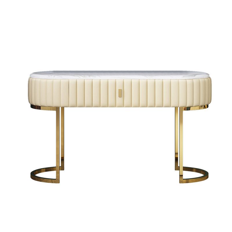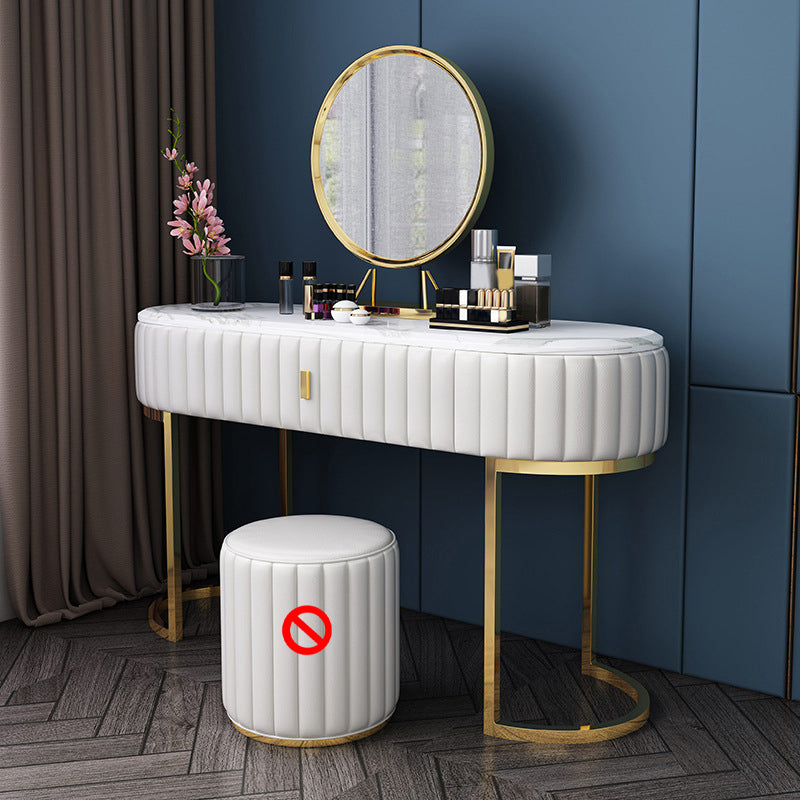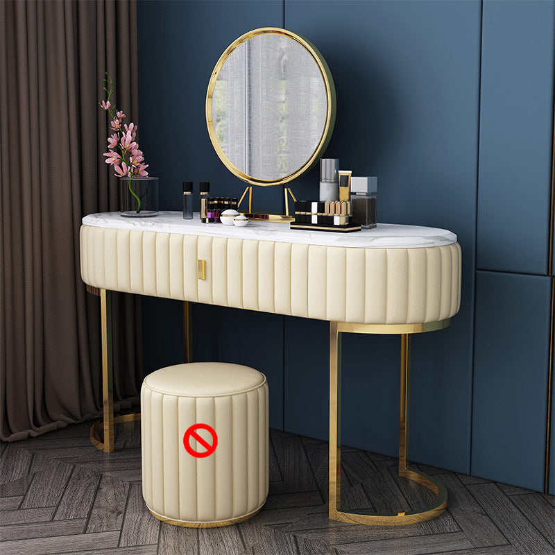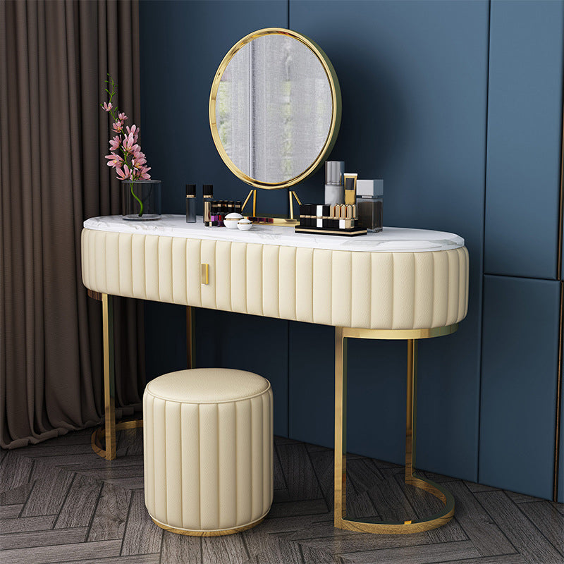 Tavolo da toeletta per vanità ovali top in pietra tavolo da trucco in metallo a specchio