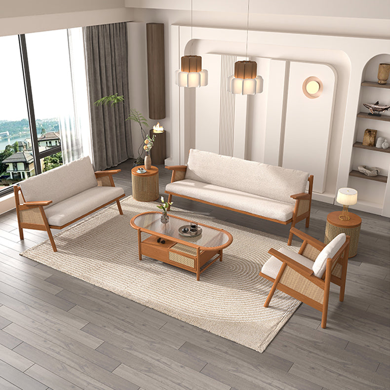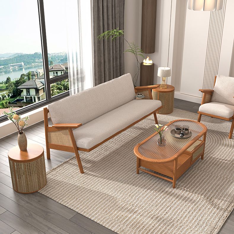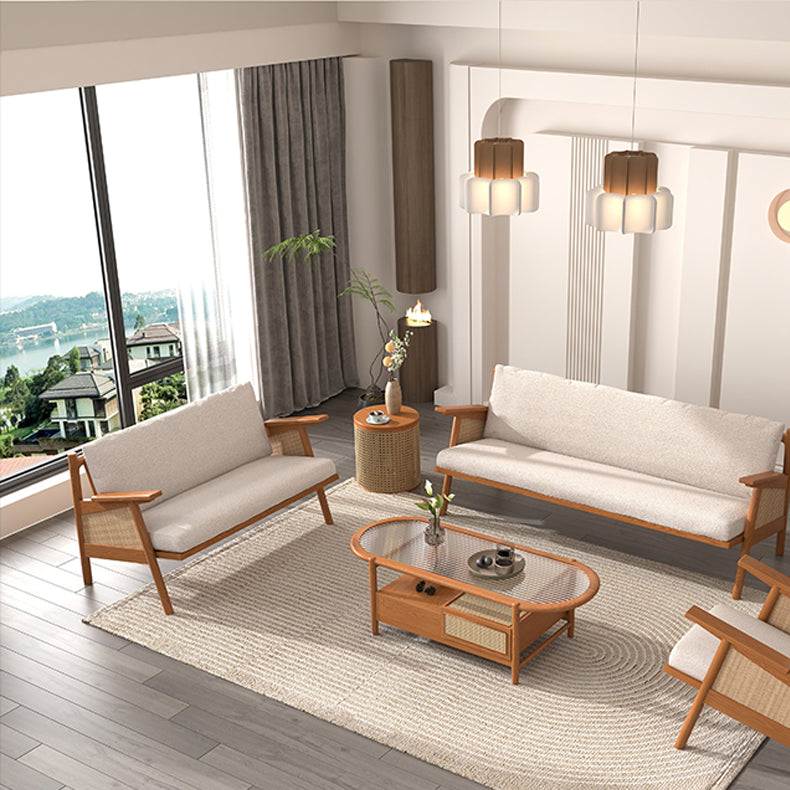 Divano soggiorno tropicale con schiena sciolta e braccio quadrato in lino