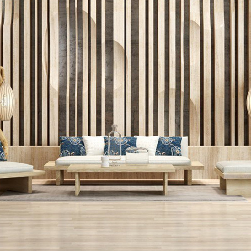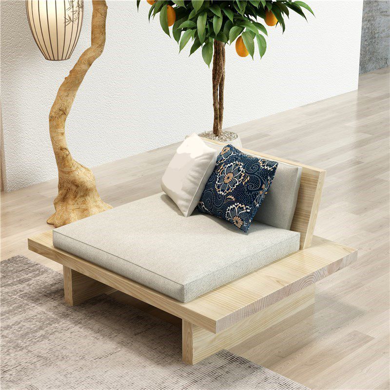 Divano a cornice in legno massiccio tropicale beige di divano cuscino con cuscini con cuscini