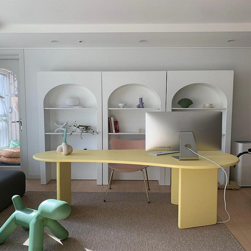 Scrivania di scrittura a forma non convenzionale moderna scrivania in legno massiccio per ufficio
