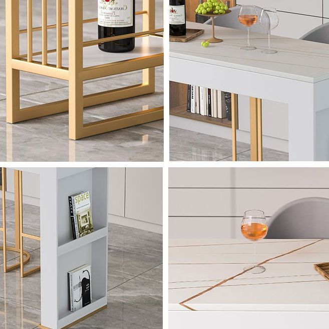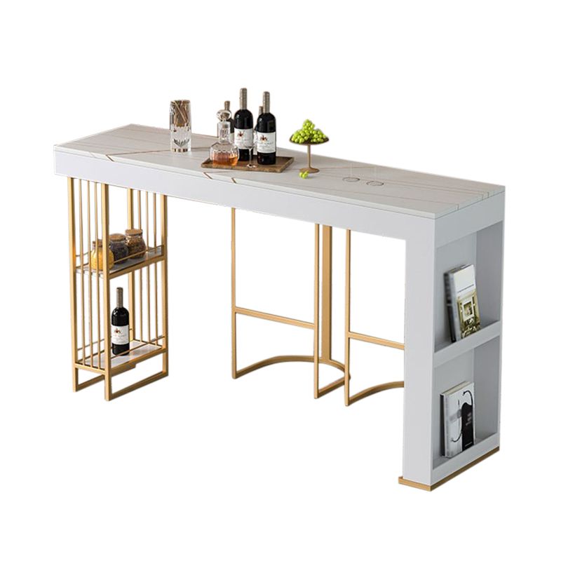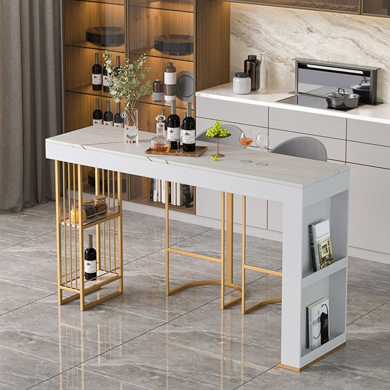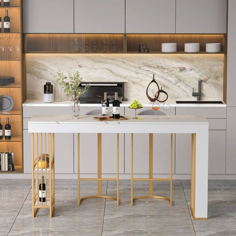 Tavolo da pranzo a bar in pietra bianca tradizionale tavolo da bar rettangolo di lusso con base in slitta in oro
