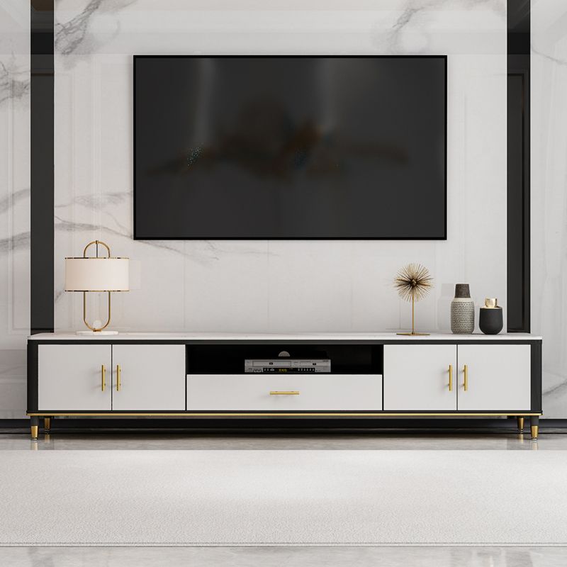 Console TV bianca in stile glam da 17,72 "H in stile TV con 1 cassetto per soggiorno