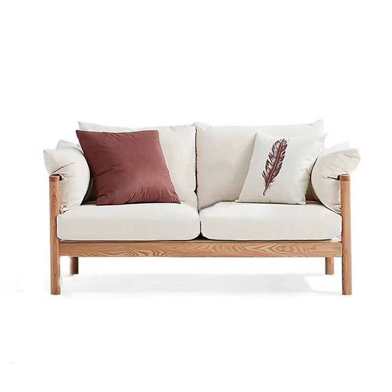 Divano a braccio quadrato moderno di lino beige divano standard in legno per soggiorno