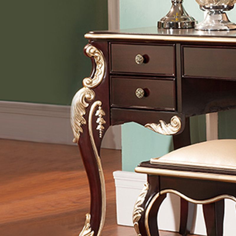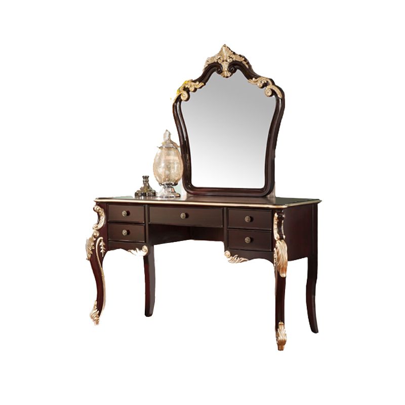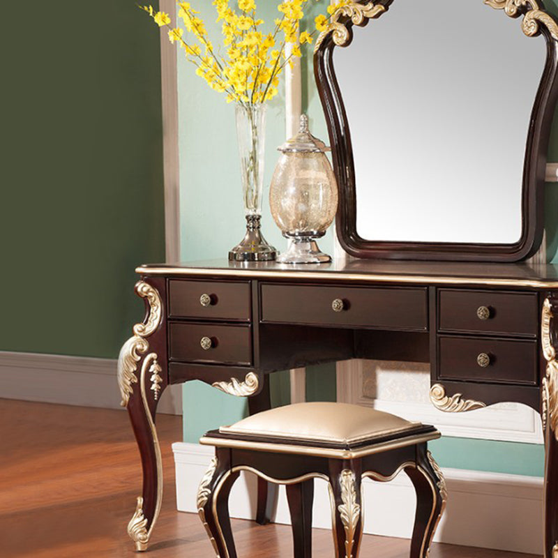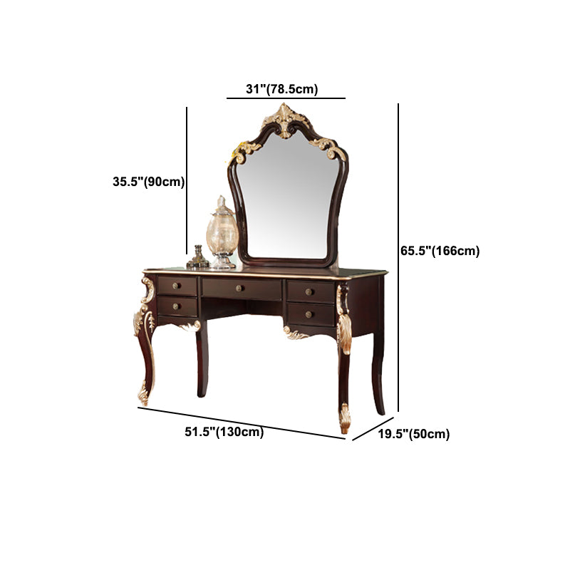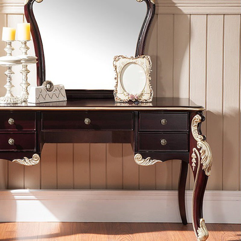 Contatore di trucco marrone con specchio da 19,68 "tavoli da vanità in legno largo con 5 cassetti