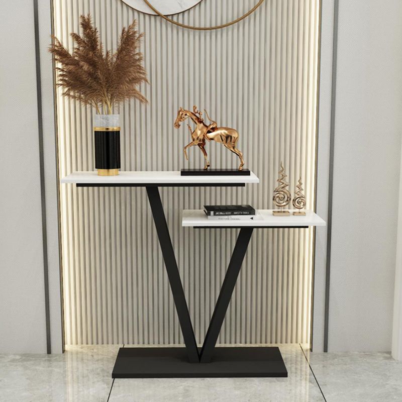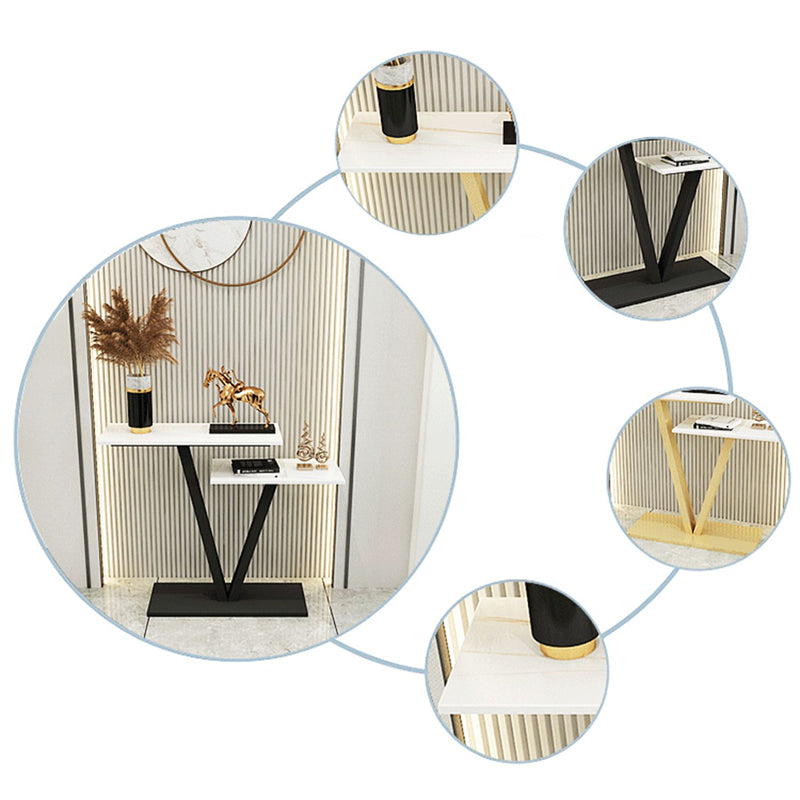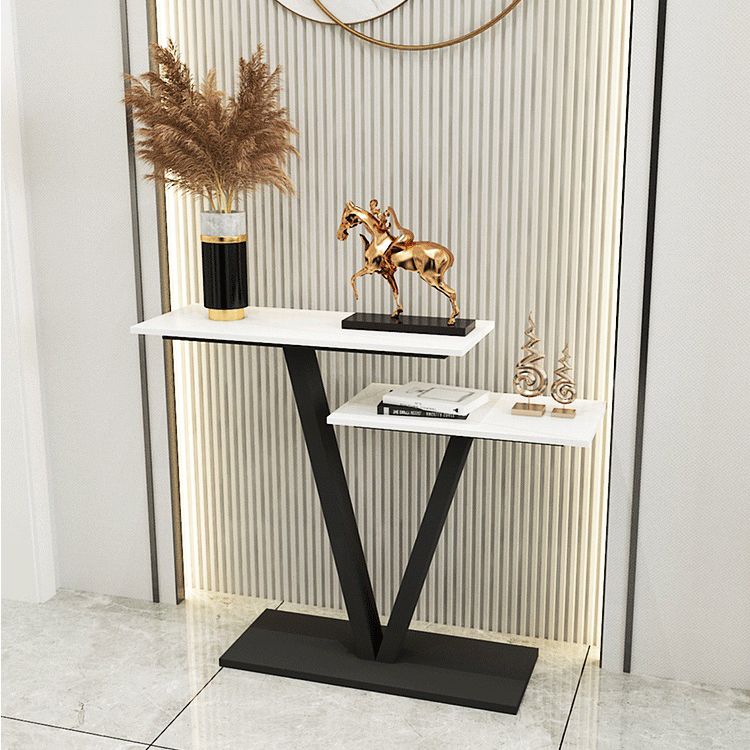Tavolo da divano di divano console in pietra contemporanea tavolo da rettangolo con scaffale per la sala