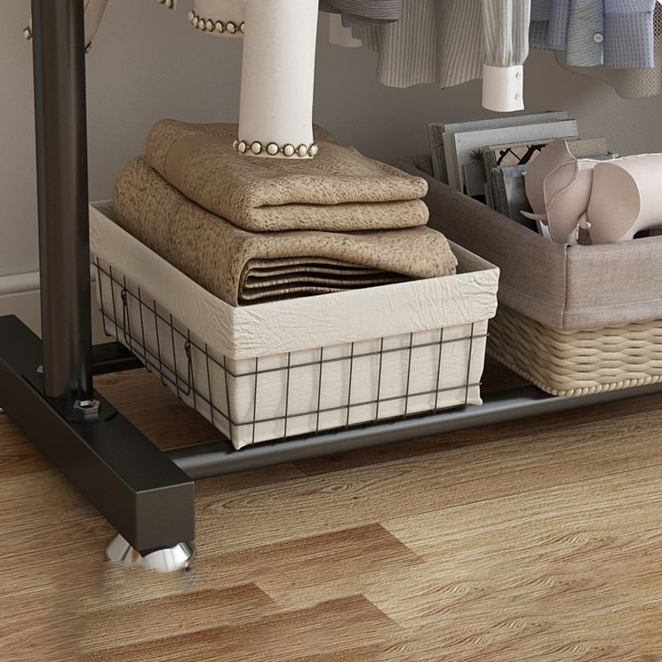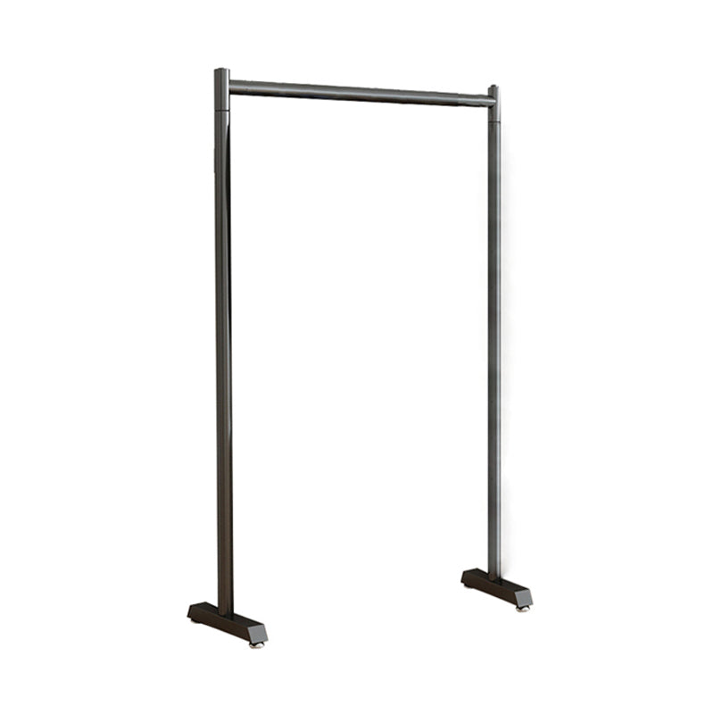Armadiet in acciaio inossidabile a armadio aperto in stile contemporaneo con asta di abbigliamento