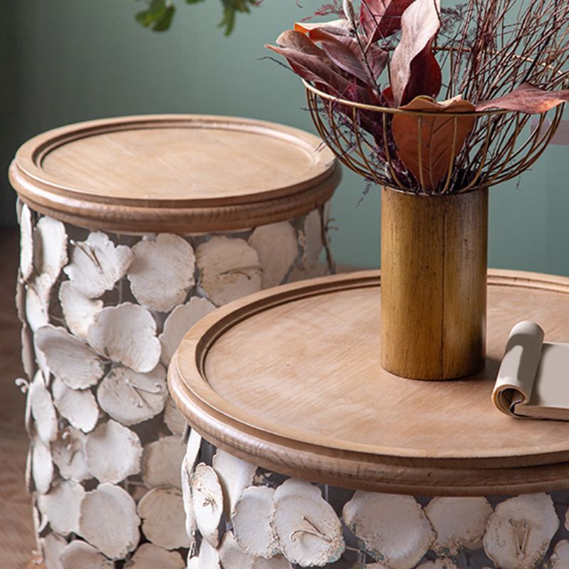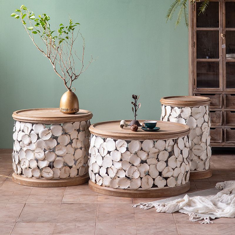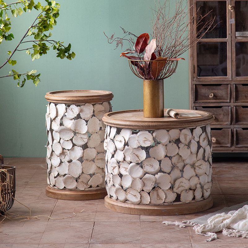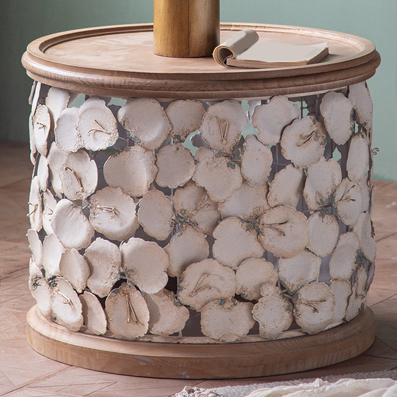 Tavolo laterale accento a forma di tamburo in legno e in metallo tavolo d'angolo in stile rustico