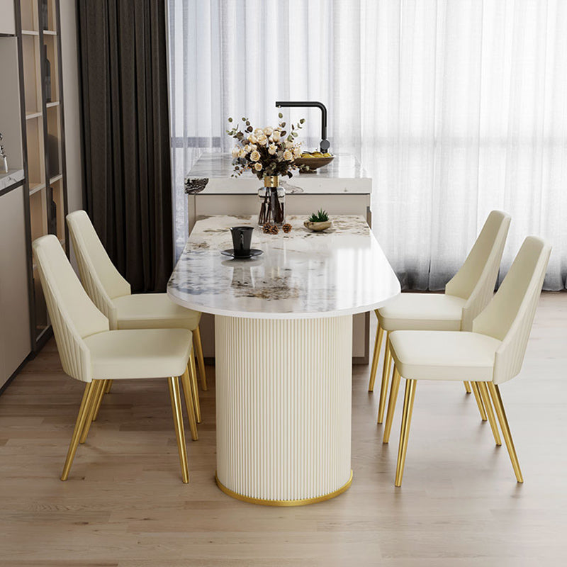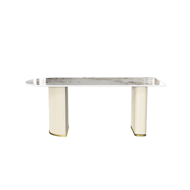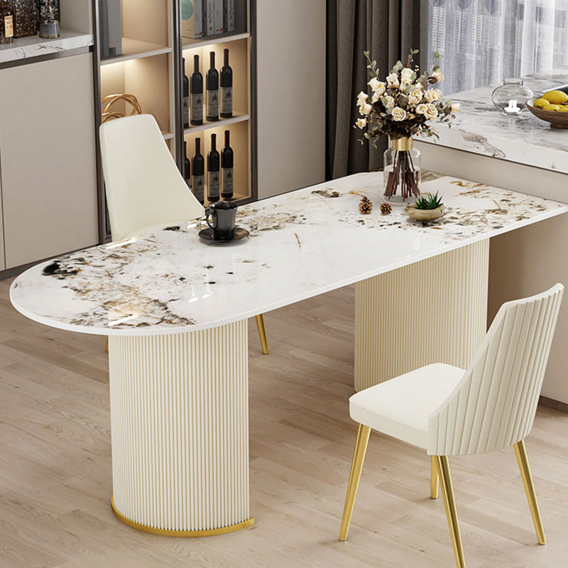 Tavolo da pranzo in pietra sinterizzato a forma libera tavolo di lusso doppio piedistallo per sala da pranzo