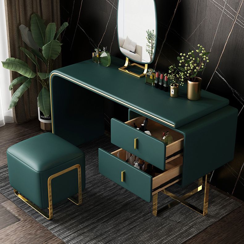 Vanity trucco glam con 2 cassetti di stoccaggio da 20,47 "largo cassettiere in pelle finta