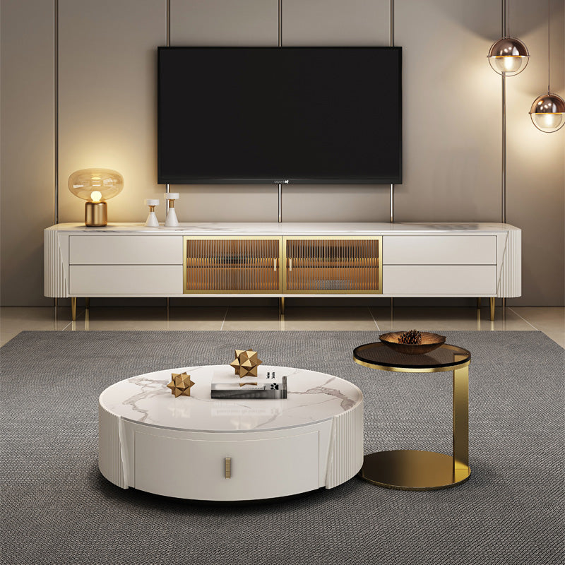 Glam Stone TV Media Console Stand di archiviazione chiusa in bianco