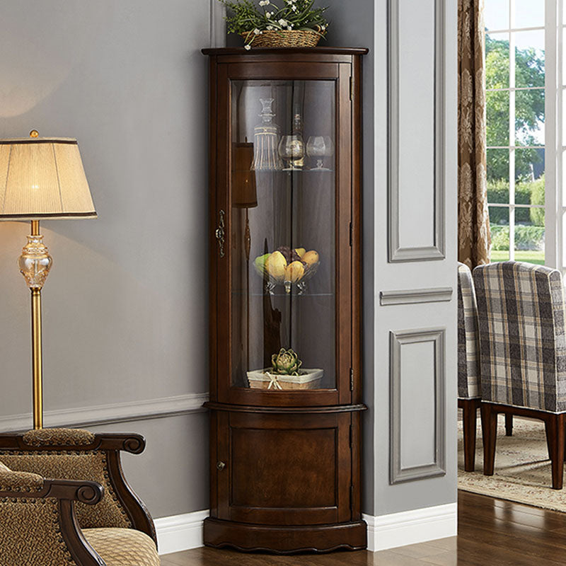 Accente di accento rustico angolare in legno in legno in vetro con porte