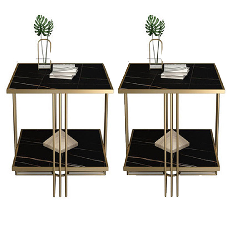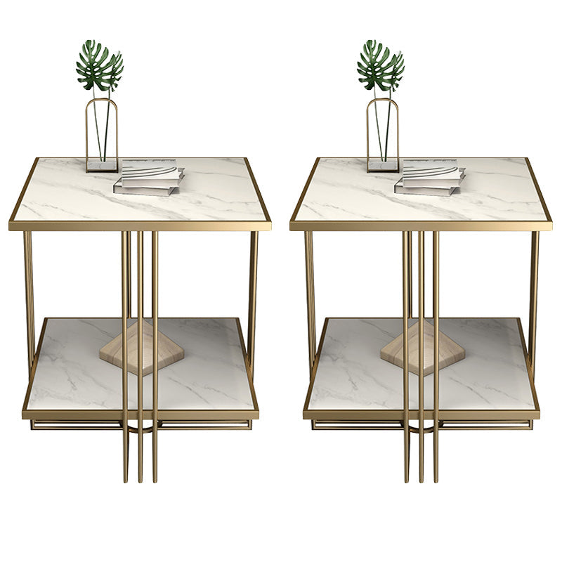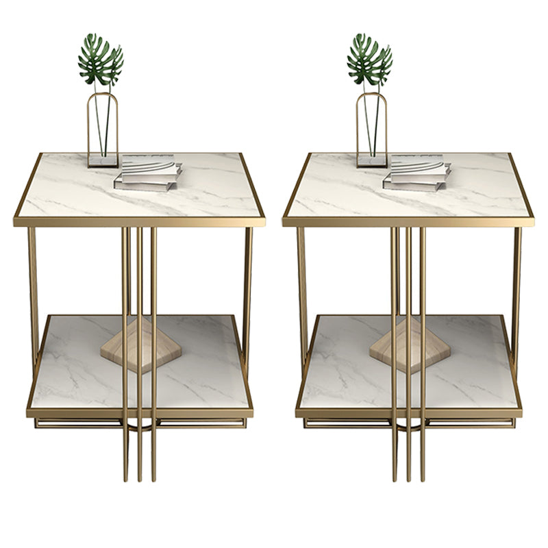 Tavolo da notte in pietra d'oro Glam mobile per comodino con 2 ripiani