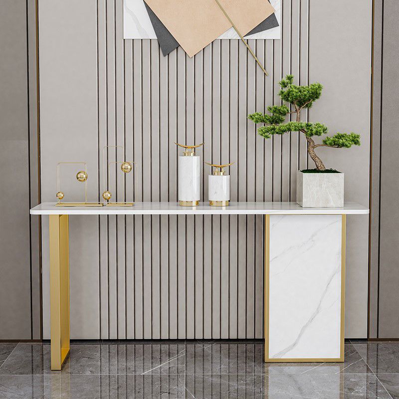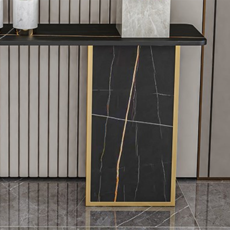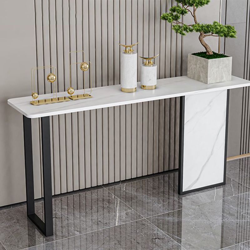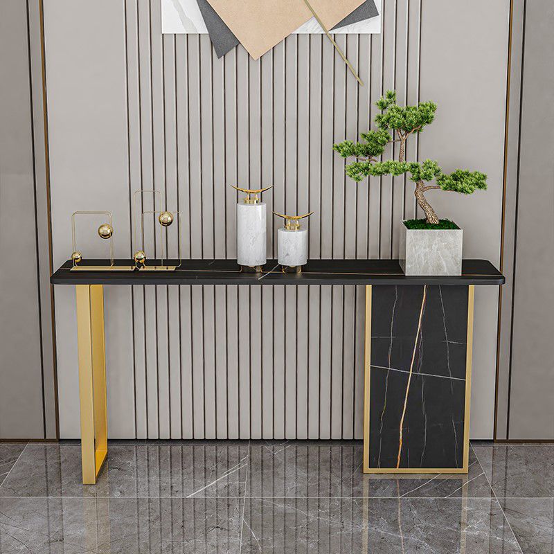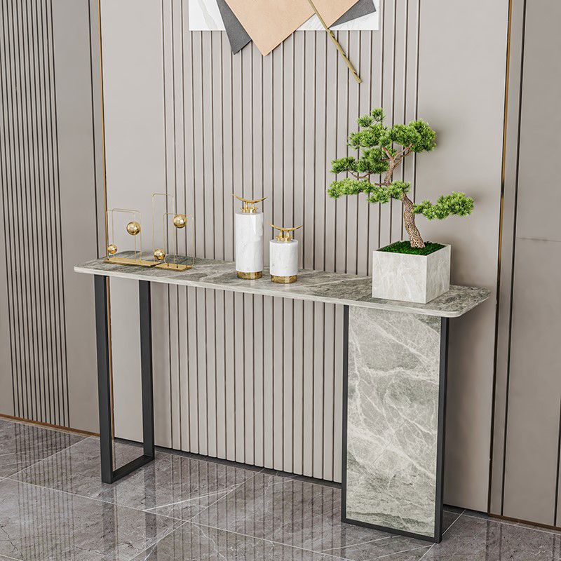 Tavolo di accento di base di ferro con top di pietra rettangolo per console Hall