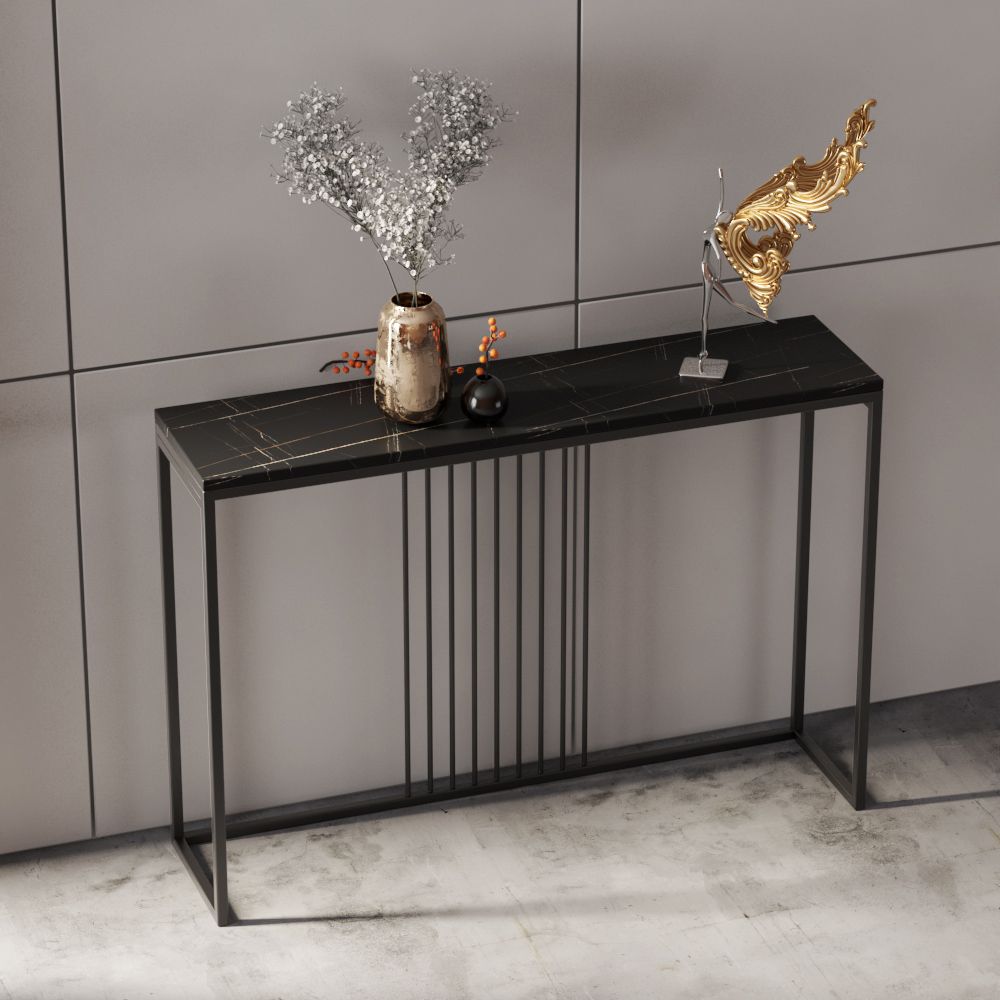 Tabella della console di base di cavalletto di ferro con tavolo accento superiore in pietra rettangolo