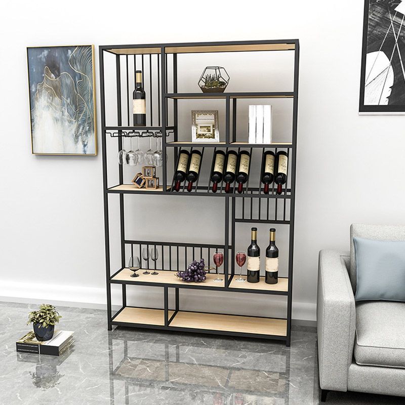 Bottiglia di vino in metallo e portabicchieri in vetro Porta del pavimento moderno con scaffale