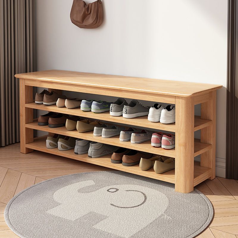 Banco moderno della metà del secolo da 13,78 pollici in panchina in legno di gomma con spazio per le scarpe