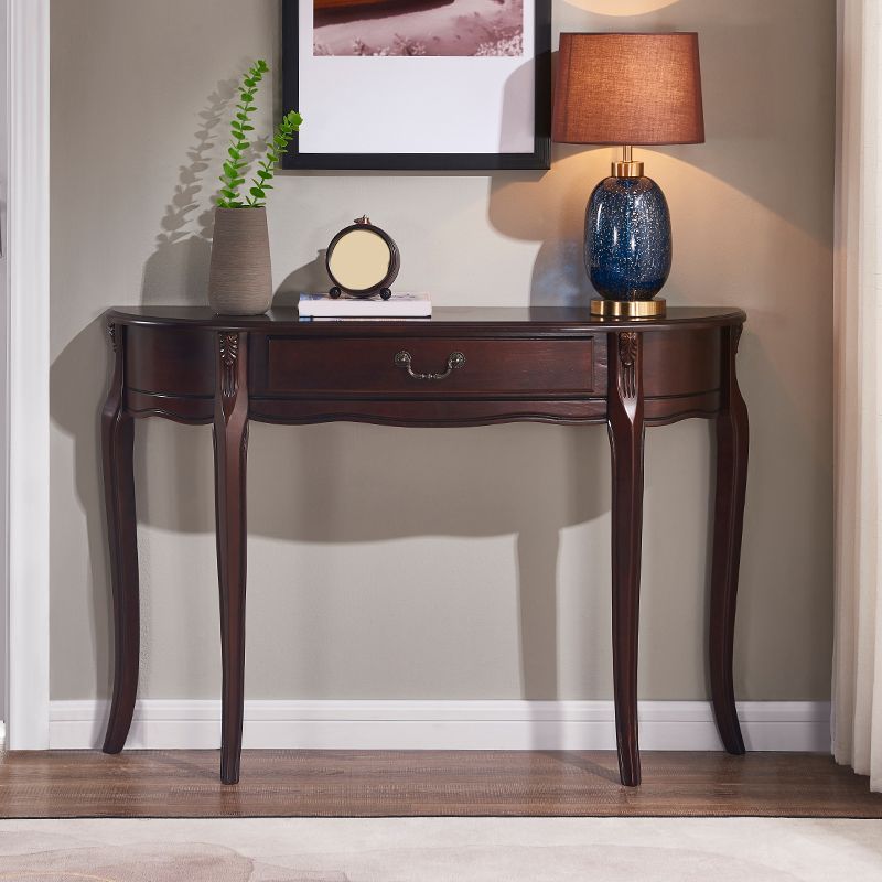 Console mezzaluna moderna di metà secolo in marrone bianco/scuro