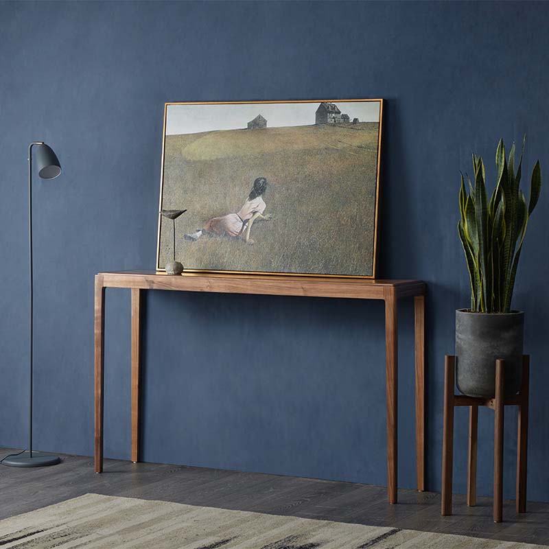 Tavolo da divano con console di pino moderno di metà secolo con 4 gambe per sala
