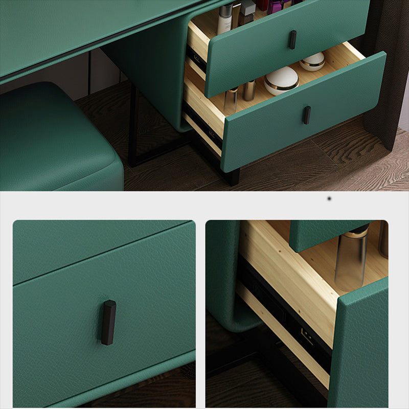 Specchio camera da letto glam doppi cassetti in pelle finta vanità per trucco in piedi