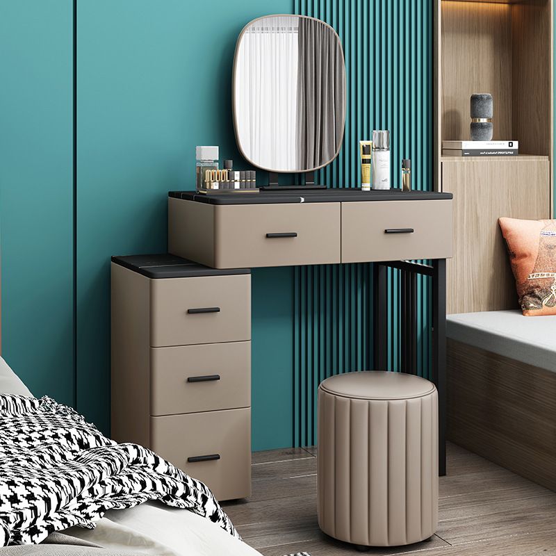 Tavolo da vanità a specchio e set di sgabelli da 25,59 "Scantina di vanità in pietra larga