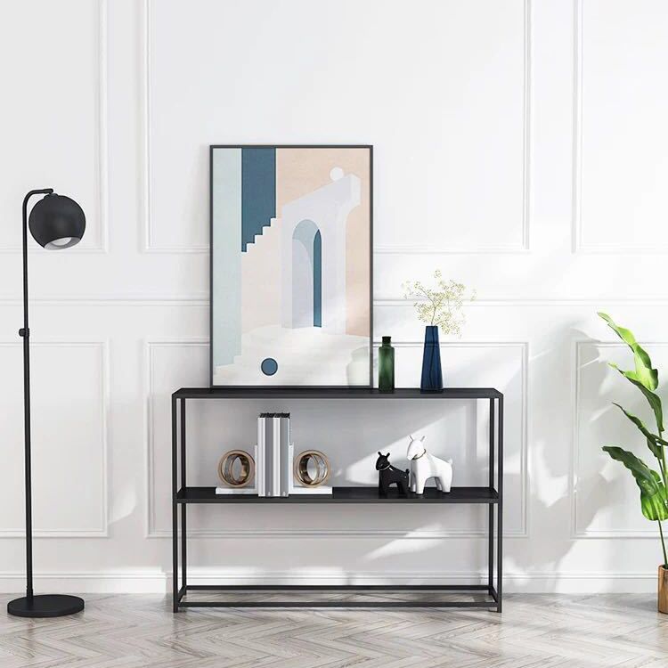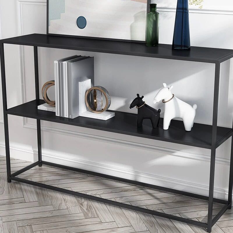 Moderno tavolo da console da 9,84 "W tavolo da base di accento con cornice di ferro con ripiani