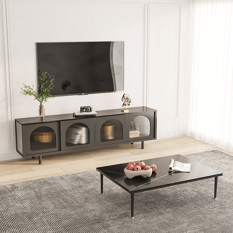STANTE TV in stile moderno pietra con console TV in stoccaggio chiuso con 4 porte