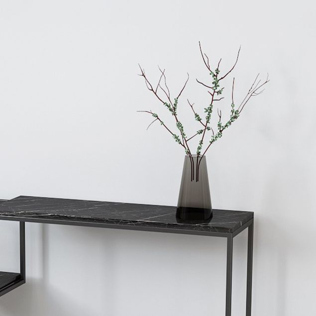 Tabella della console superiore in marmo rettangolo con scaffale di stoccaggio e base di ferro