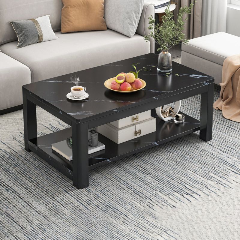 Design di base rettangolare in metallo nero a 4 gambe con tavolino da scaffale