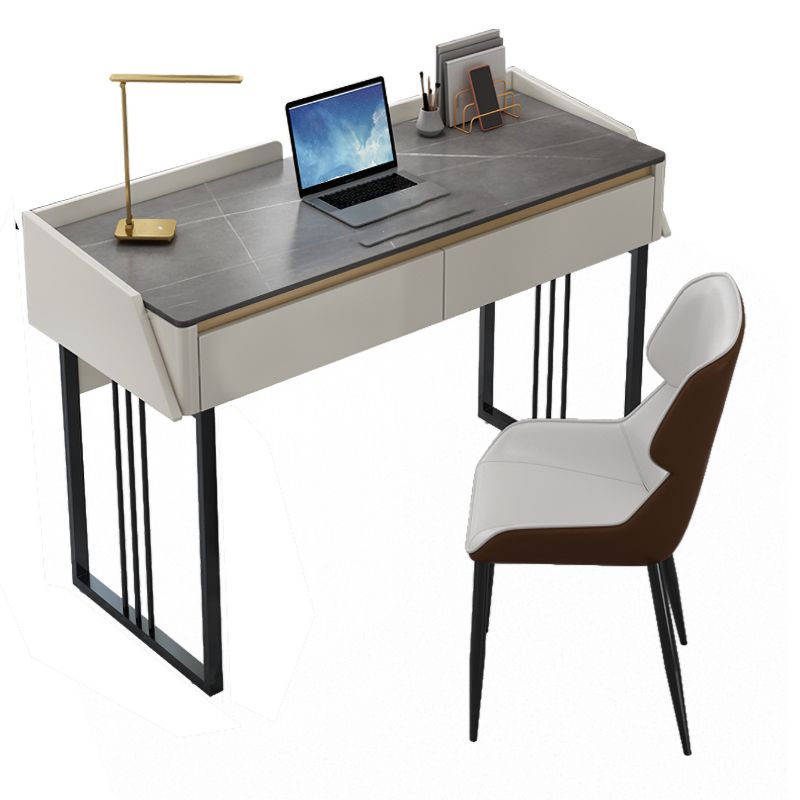 Tavolo da laptop a forma di rettangolare Scrivatura in pietra in pietra in grigio/bianco