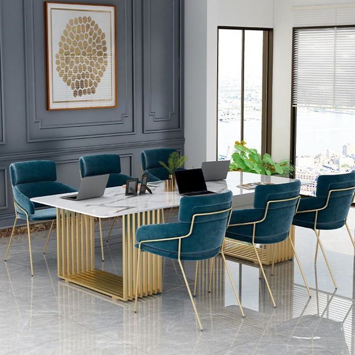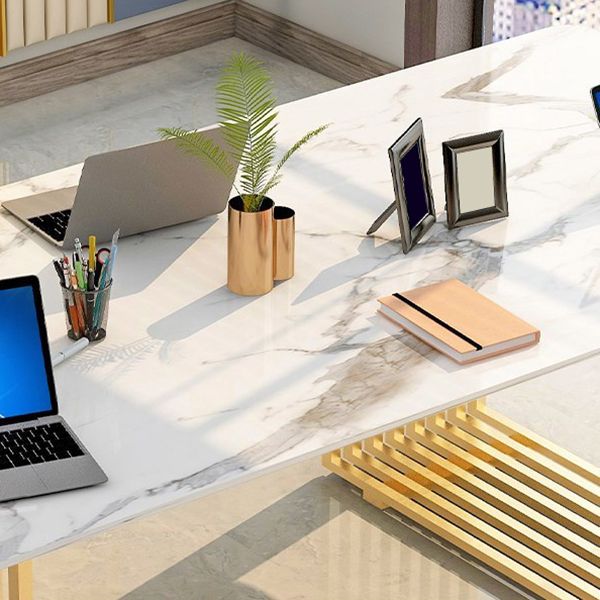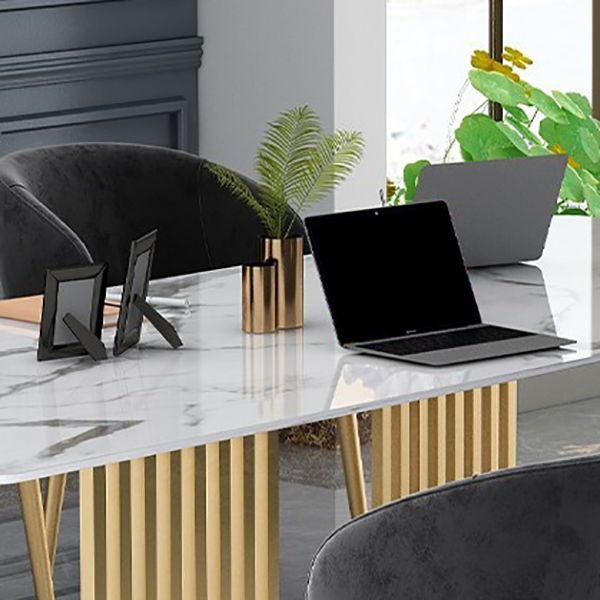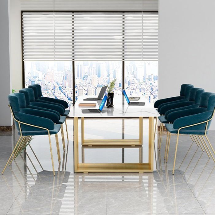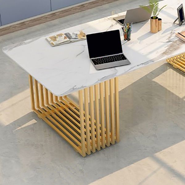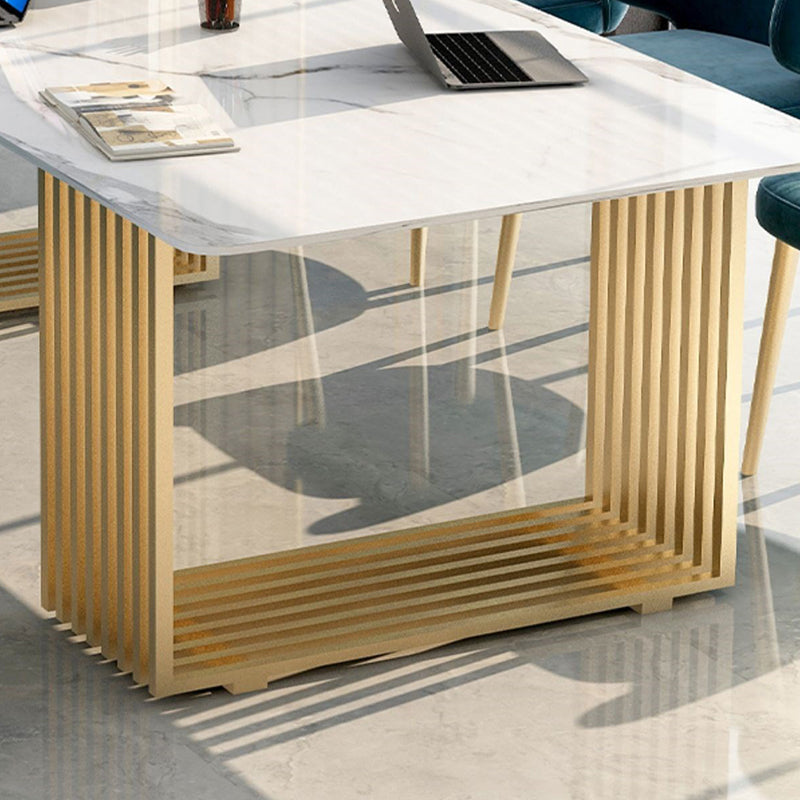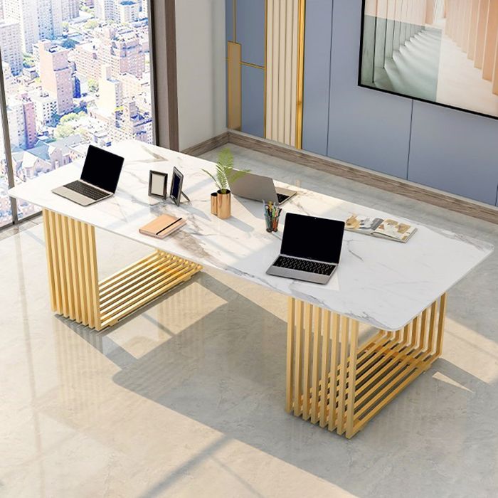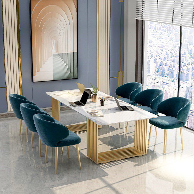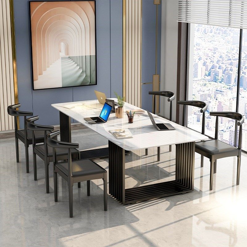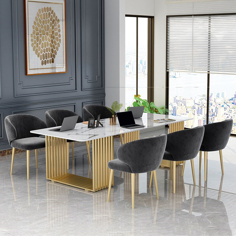 Conferenza in pietra a forma di rettangolare Tabella a 2 gambe scrivania in oro/nero