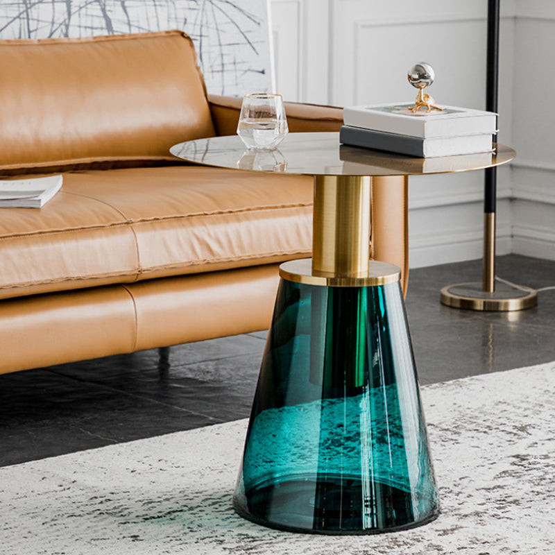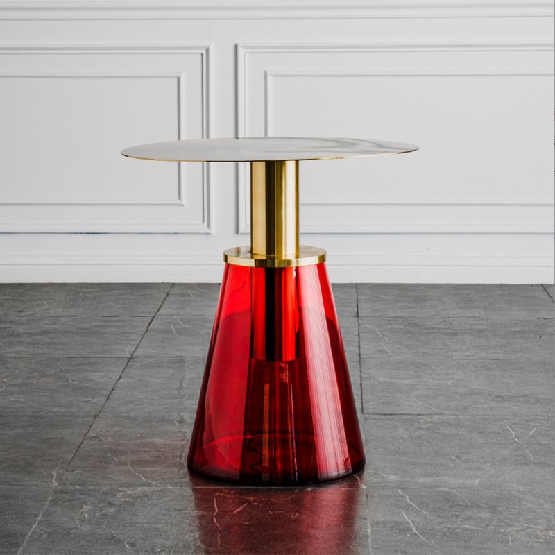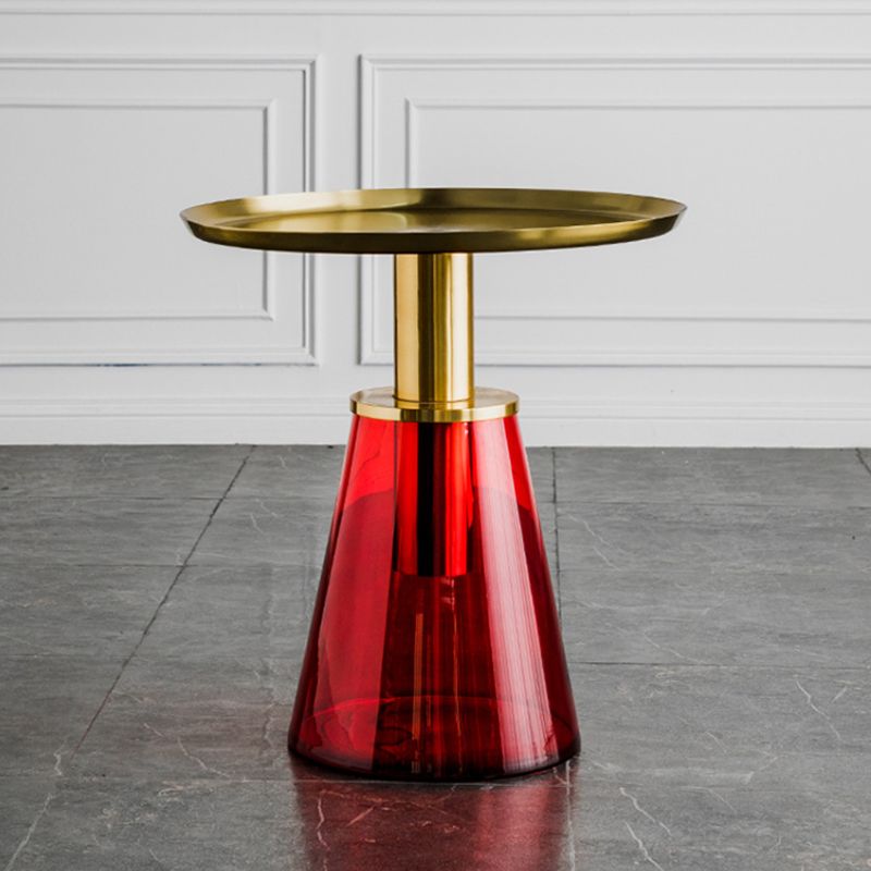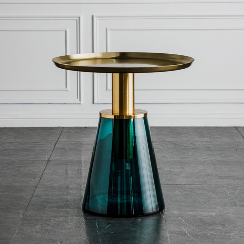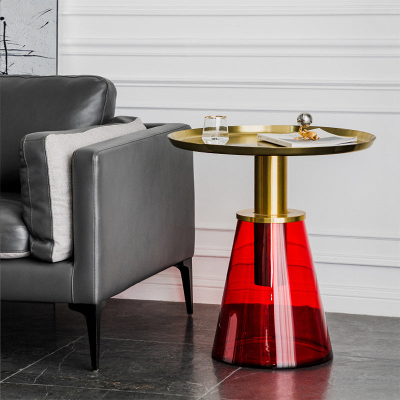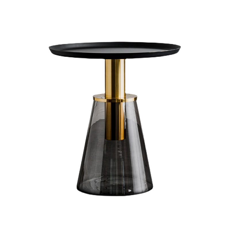 Tavolino in metallo/vetro rotondo con base laterale moderna di base a base di piedistallo