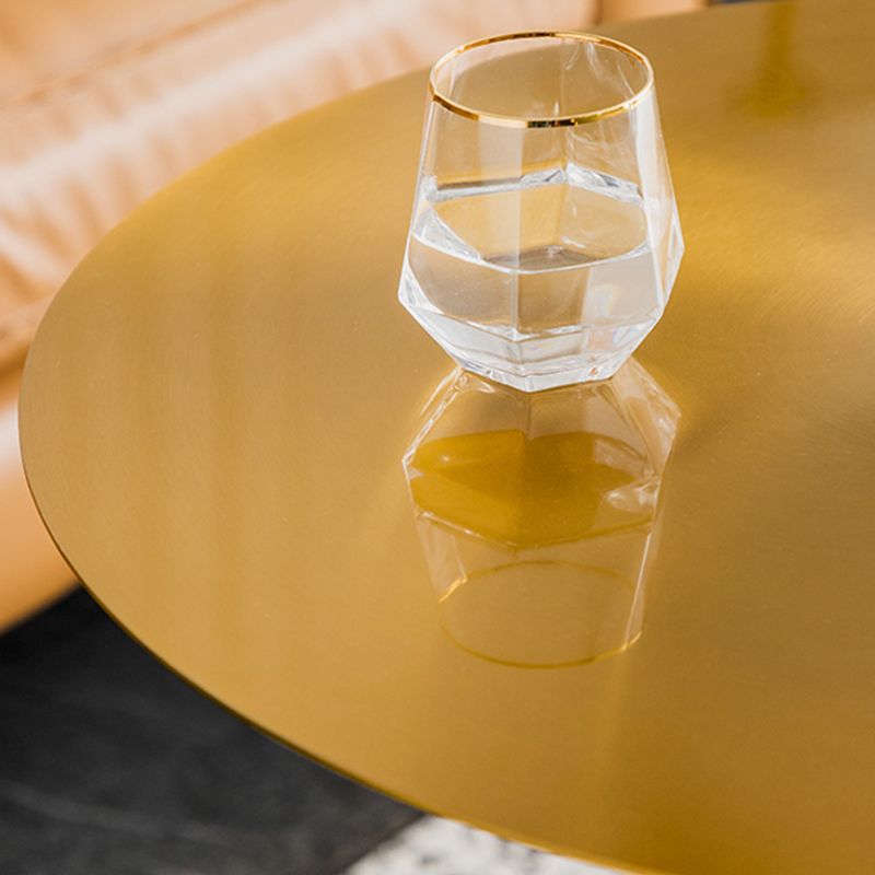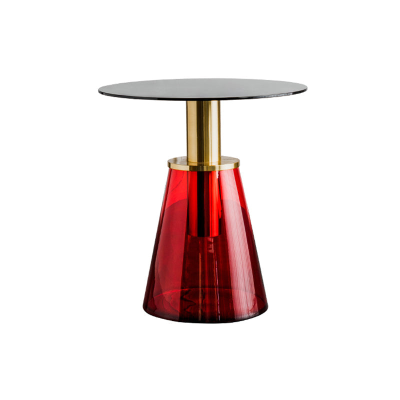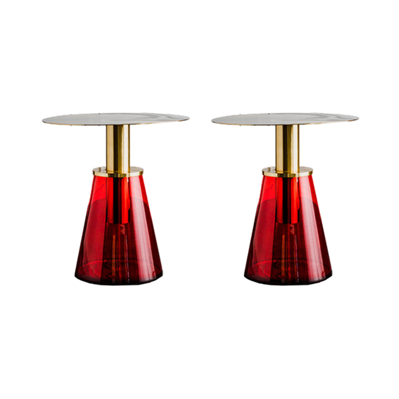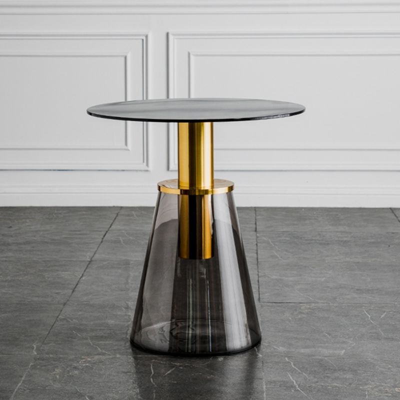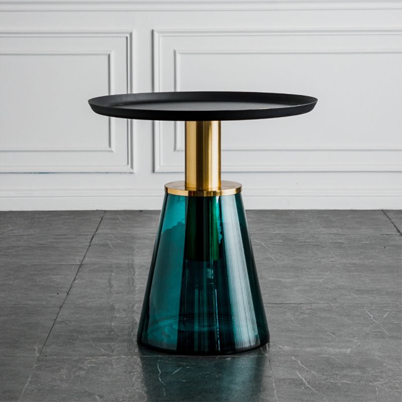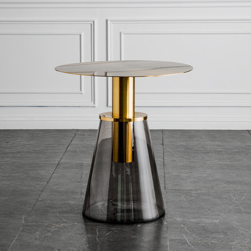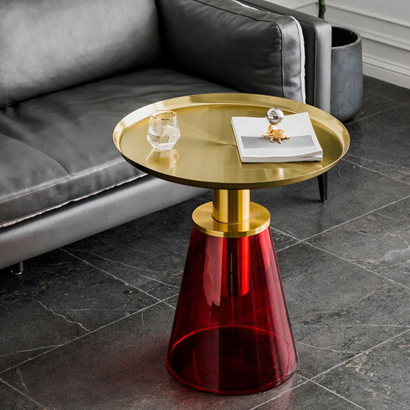 Tavolino in metallo/vetro rotondo con base laterale moderna di base a base di piedistallo