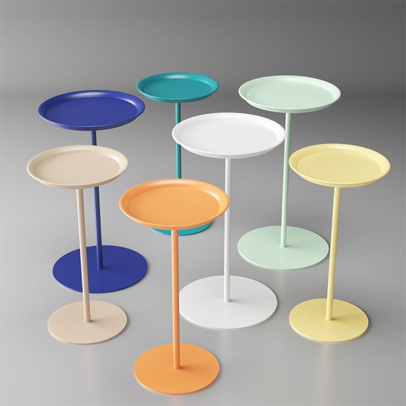 Tavolino in metallo rotondo con base laterale moderna di base di base di piedistallo