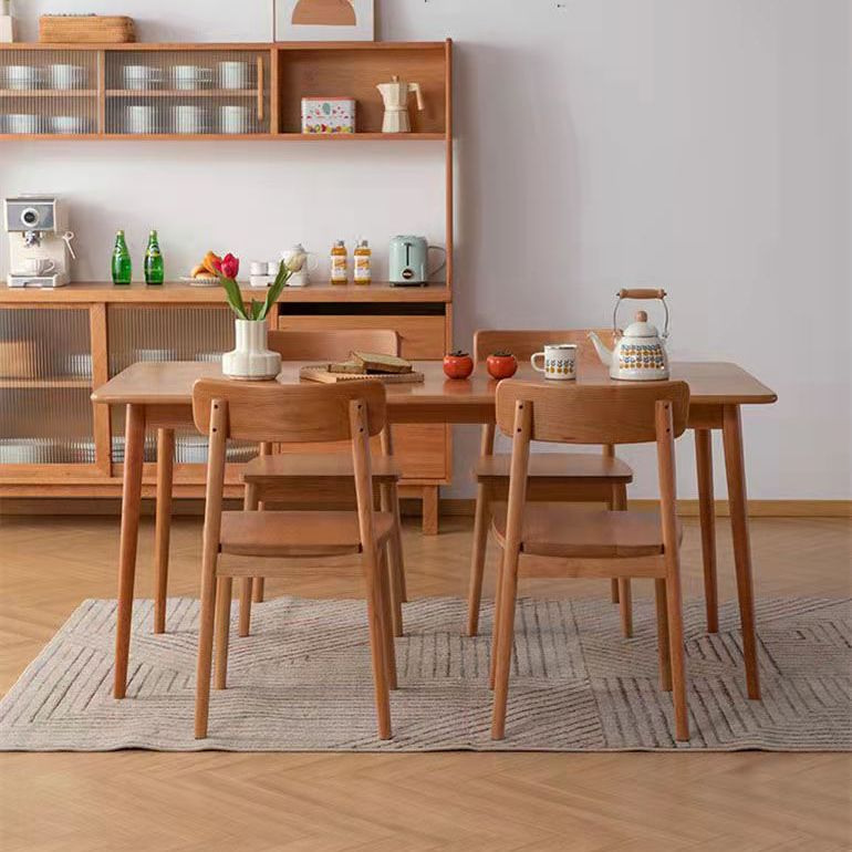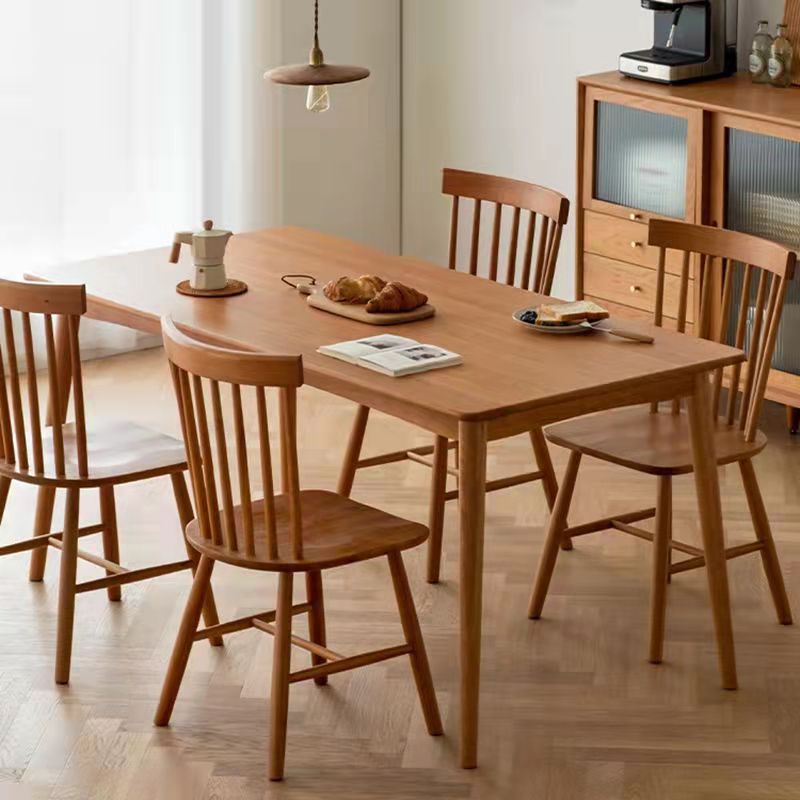 Set da pranzo moderno in legno di quercia Set da tavolo da pranzo beige rettangolare da 1/2/5 pezzi