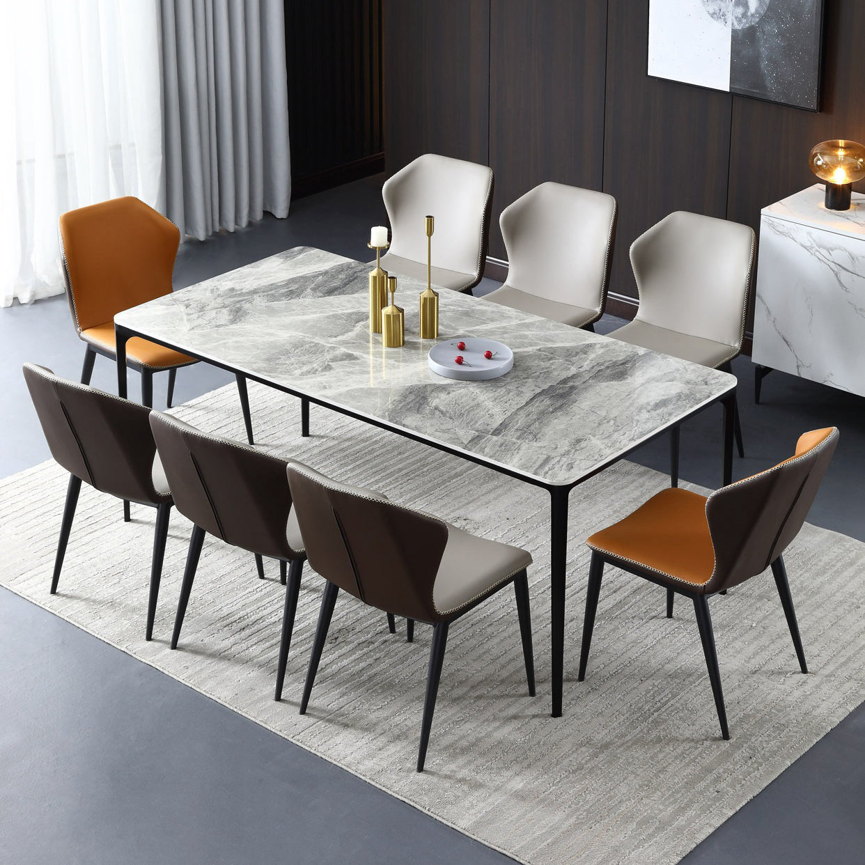 Set da pranzo moderno in pietra sinterizzata rettangolare Set da pranzo da 1/4/6/7/9 pezzi