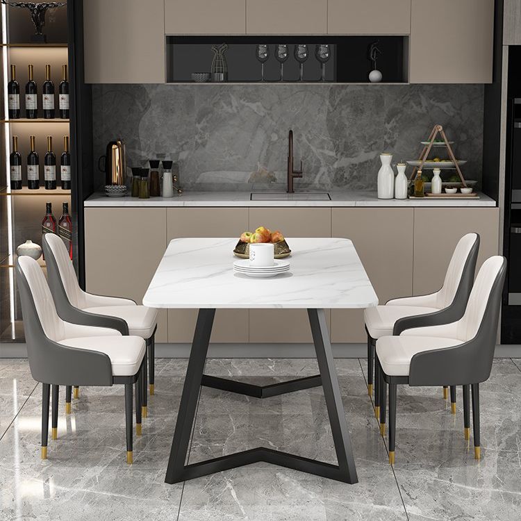 Set tavolo da pranzo moderno rettangolare Set dinette da 1/2/5/7 pezzi con piano in pietra sinterizzata bianca