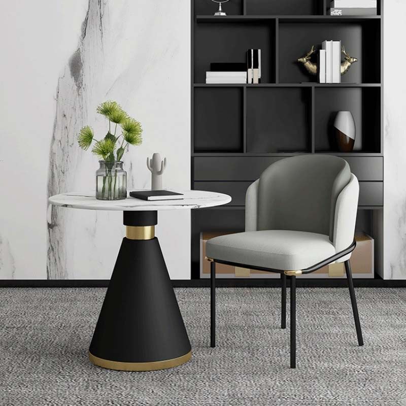 Tavolo da pranzo rotondo in stile moderno Tavolo bianco con base in metallo