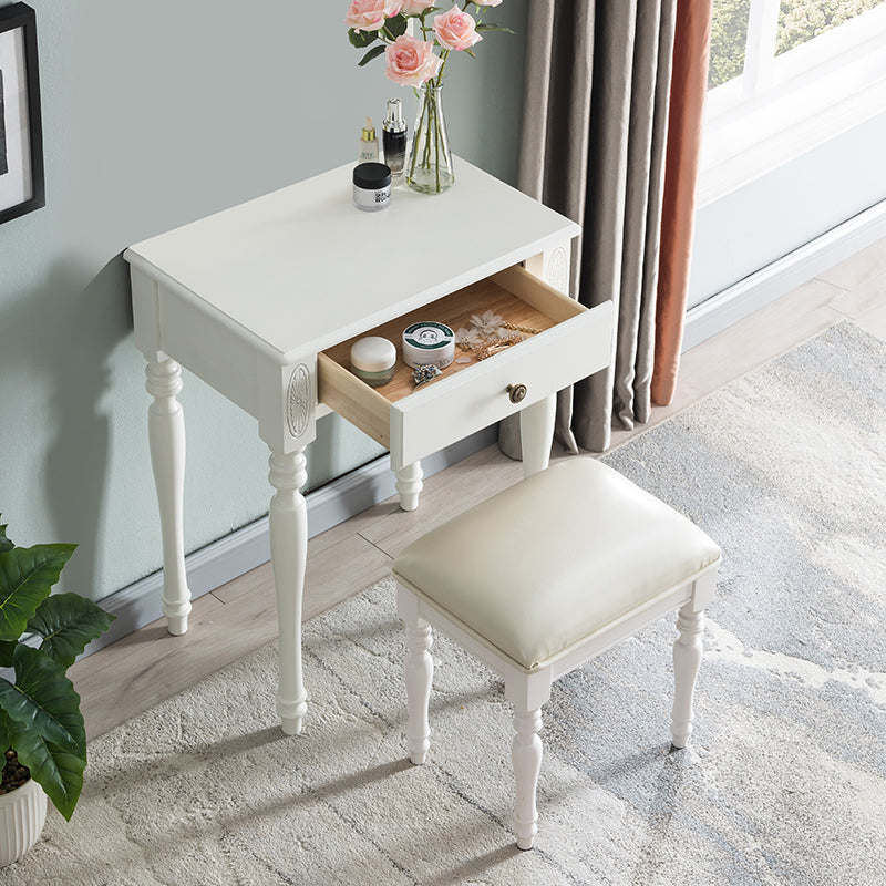 Scatola di stoccaggio tradizionale in legno di gomma 1 cassetto tavolo da vanità