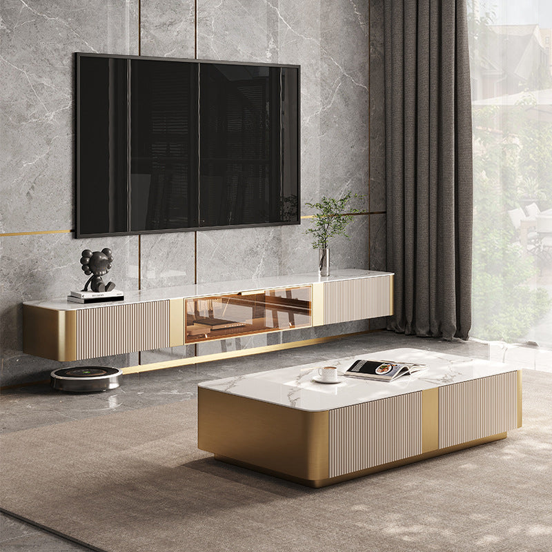Supporto TV in pietra montato a parete 2 cassetti Glam in stile Glam TV con porta di vetro