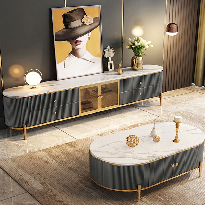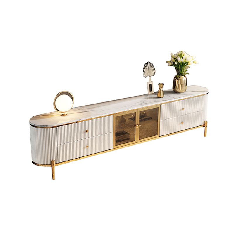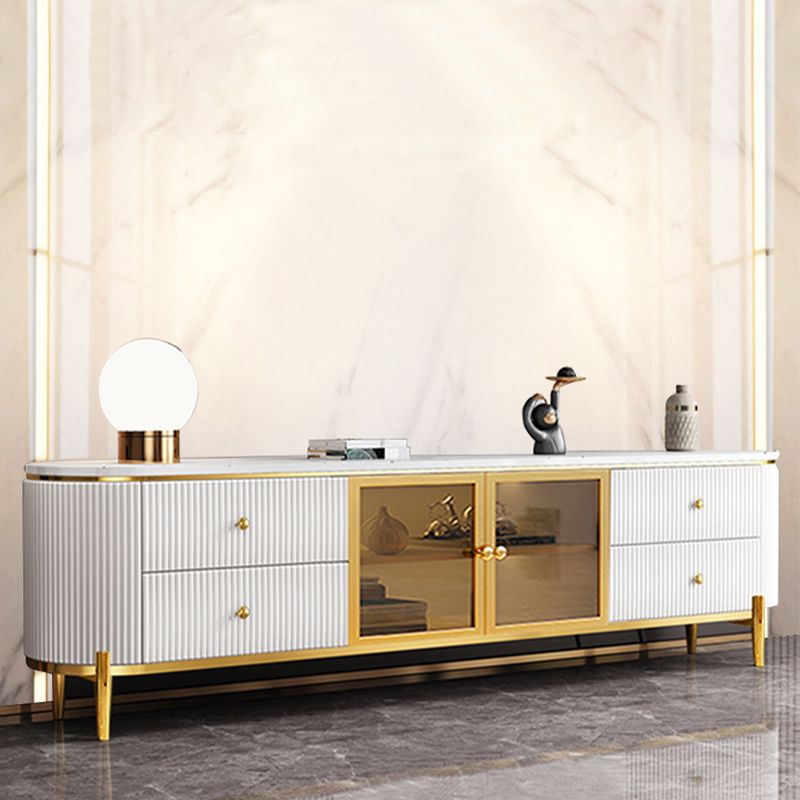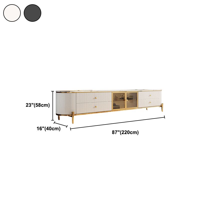 Console TV all'angolo bianco da 23 pollici e console multimediale, supporto TV in ardesia per TV con cassetti