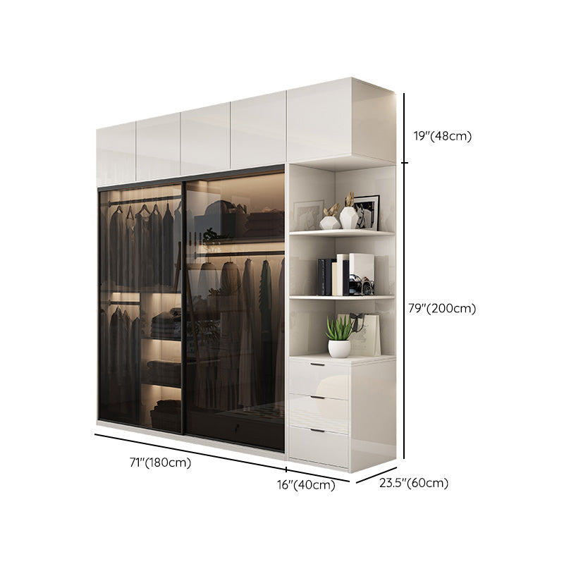 Asta di guardaroba in vetro bianco incluso armadio del guardaroba senza luce