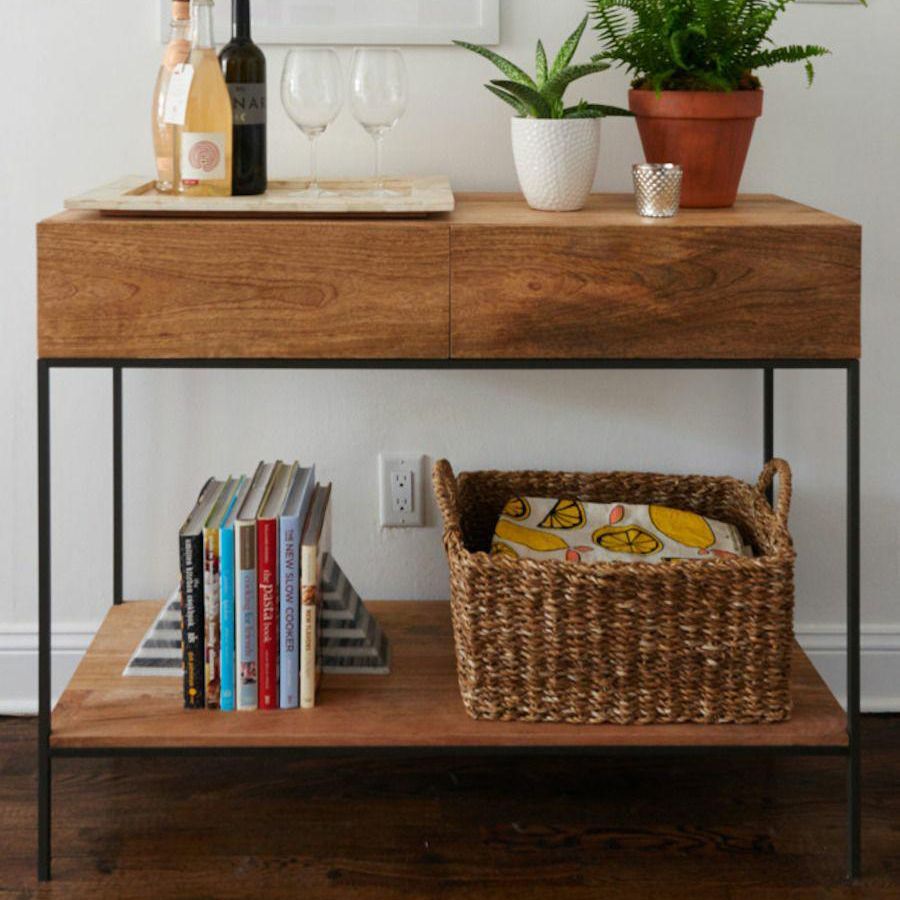 Tavolo da console a 2 cassetti nella tavola console di scaffali brone e legno
