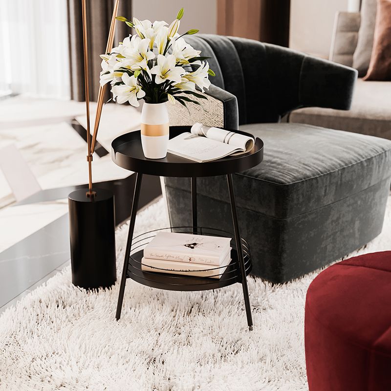 Tavolino superiore a 3 gambe mentale del vassoio rotondo da 21,6 "tavolo da gambe mentali con scaffale