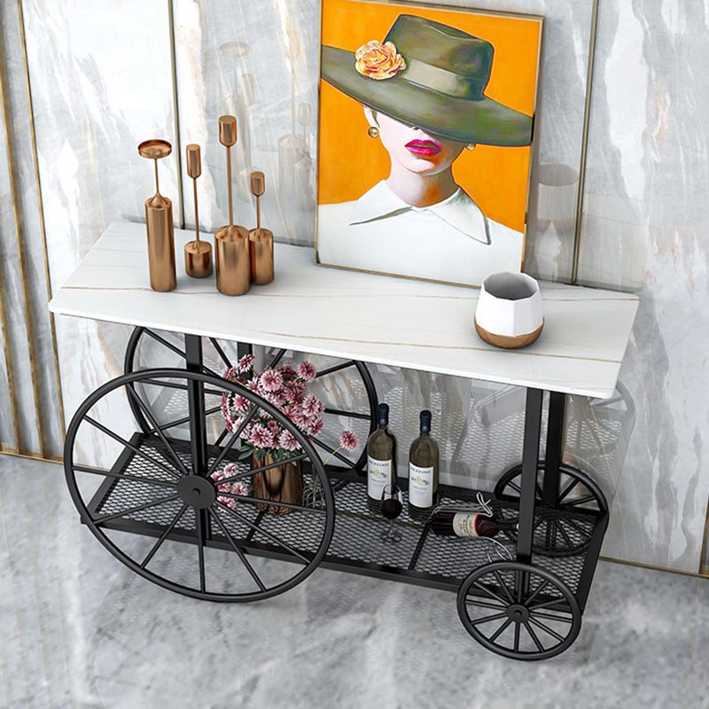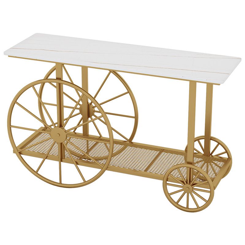 Tavolo da console a ruota alta 30,32 "Tavolo di accento in pietra con 2 ripiani
