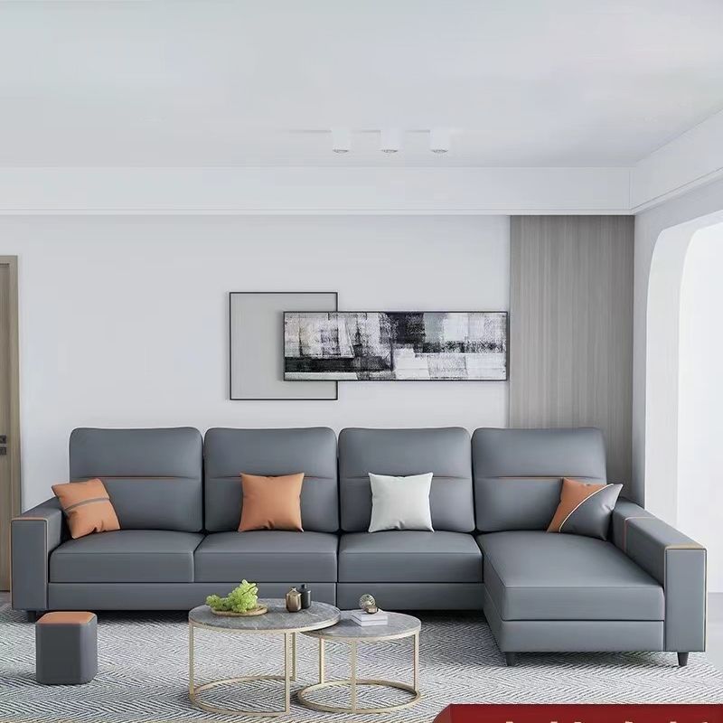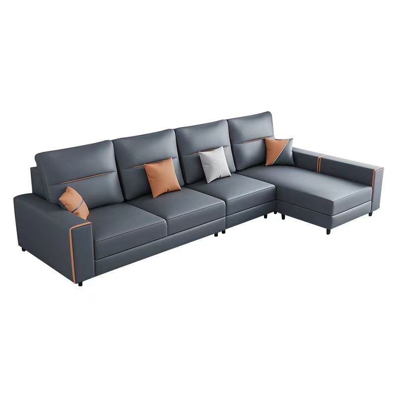 37.4"H Faux Leather Square Arm Sofa & Chaise for Living Room Clearhalo 'furn' 'furn_sectionals' 'Furniture' 'Living Room Furniture' 'Sectionals' 5400301
