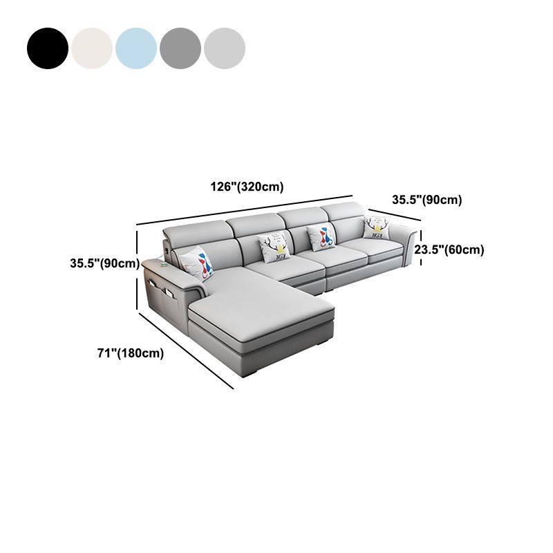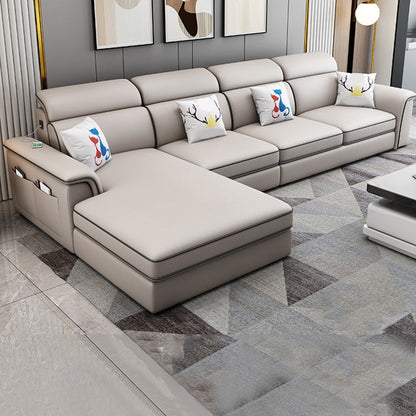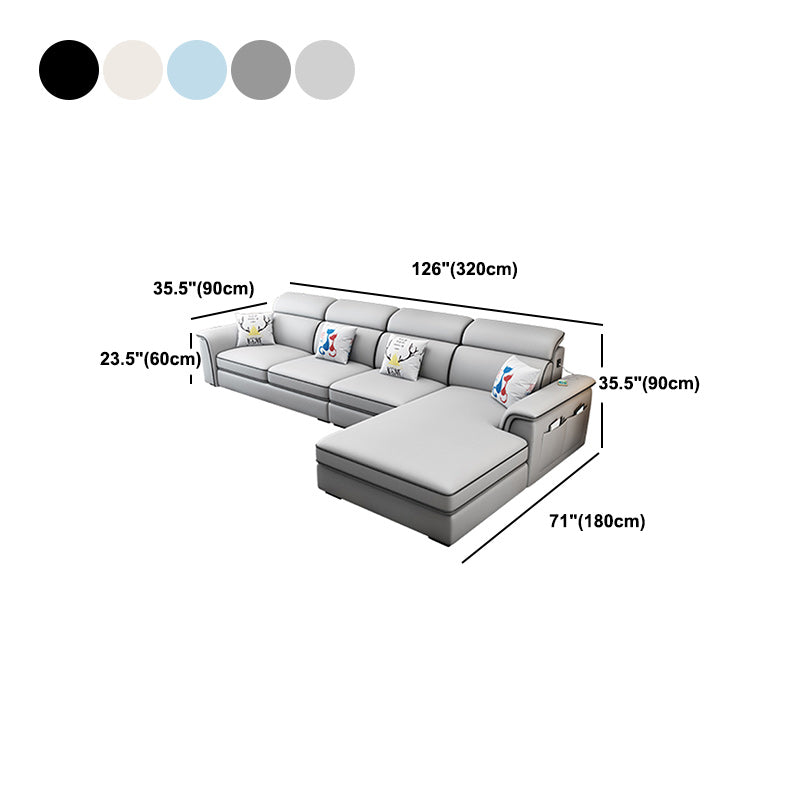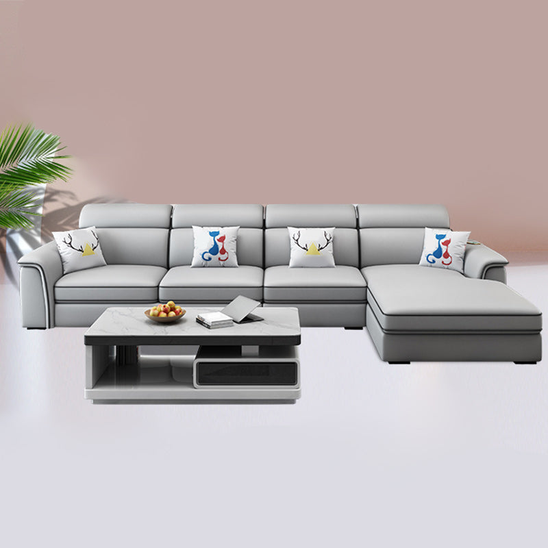 4-seat Faux Leather Pillow Top Arm Sofa & Chaise Mid Century Modern Sofa Clearhalo 'furn' 'furn_sectionals' 'Furniture' 'Living Room Furniture' 'Sectionals' 5112443