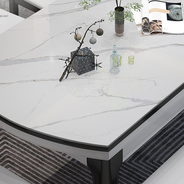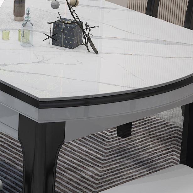 7 pezzi Set da pranzo con tavolo in pietra e sedie in legno bianco