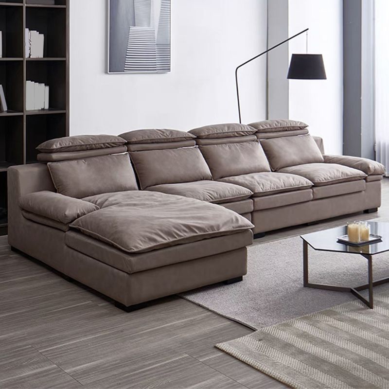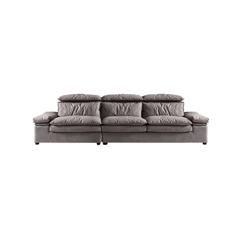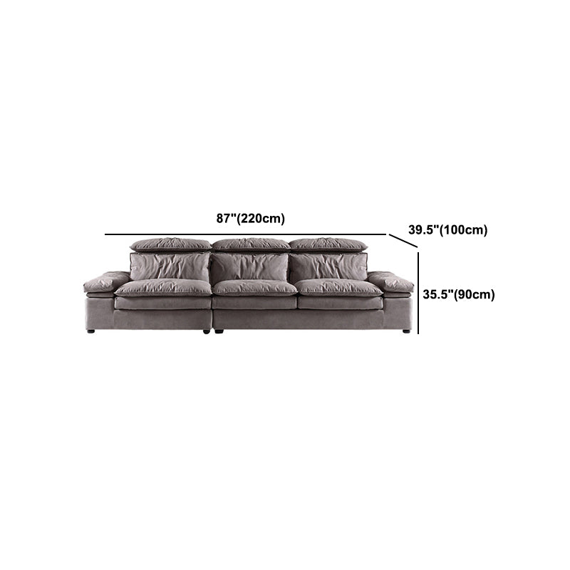 Divano a bracciale con divano in pelle posteriore con cuscinetto con telaio in legno massiccio grigio