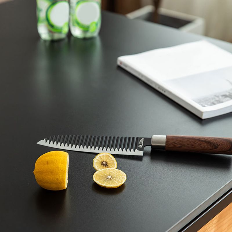 Tavolo da cucina rettangolare in pietra nera con base di stoccaggio in legno massiccio