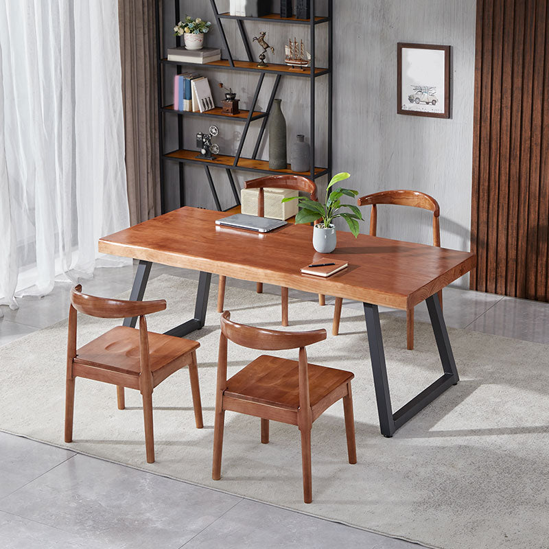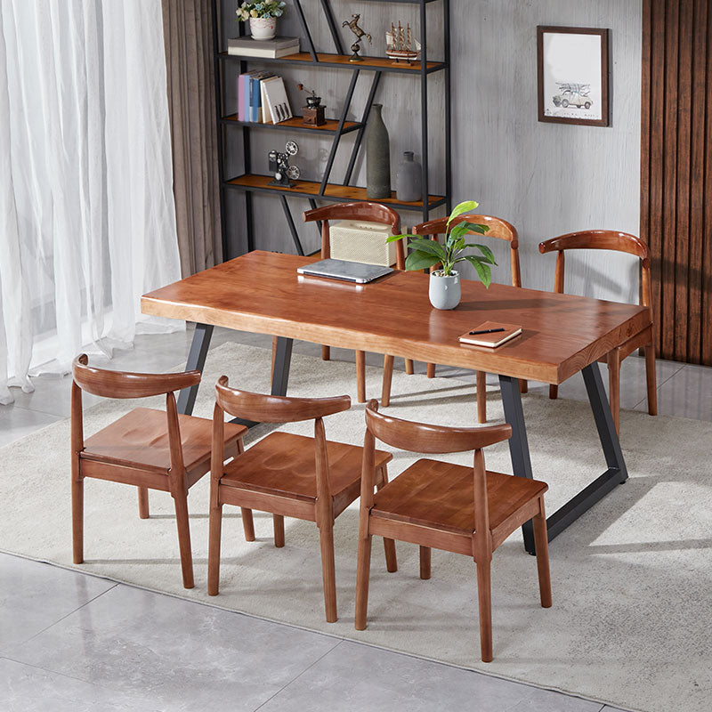 Set di tavoli da pranzo rettangolare marrone 1/2/5/7 PC Dinette in legno massiccio per la cucina